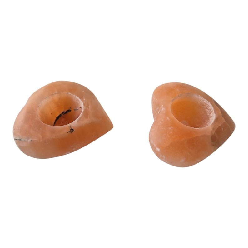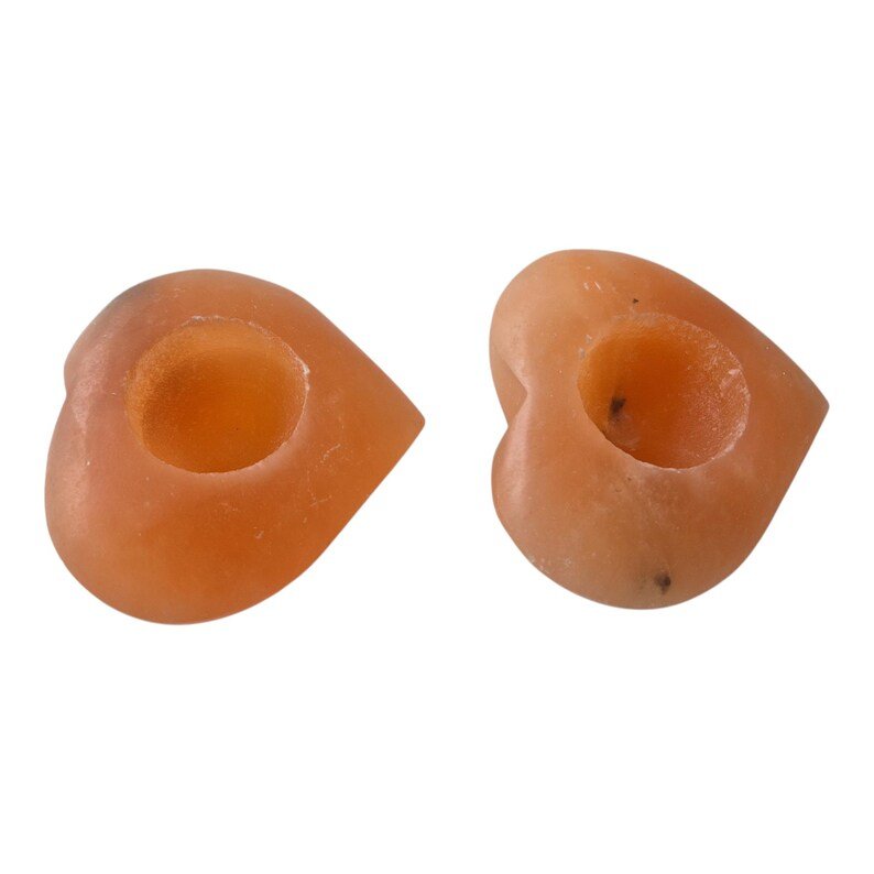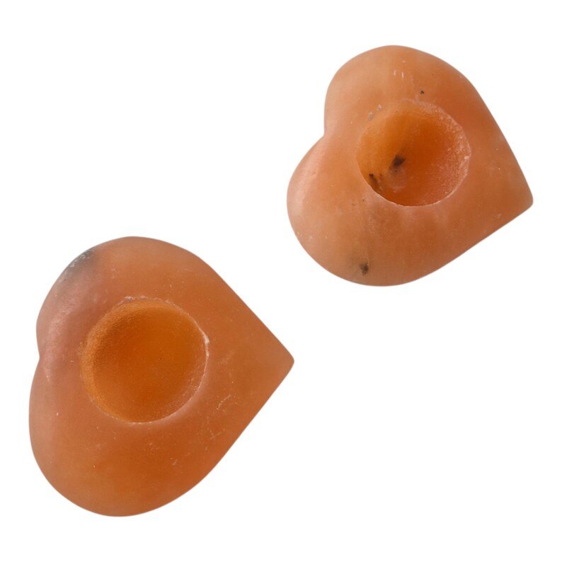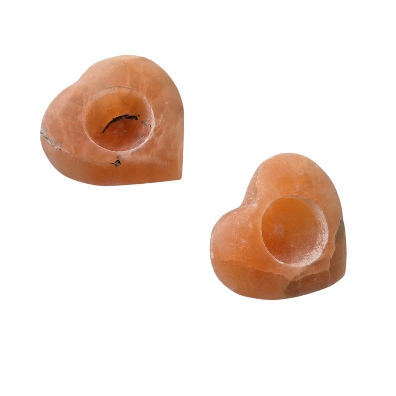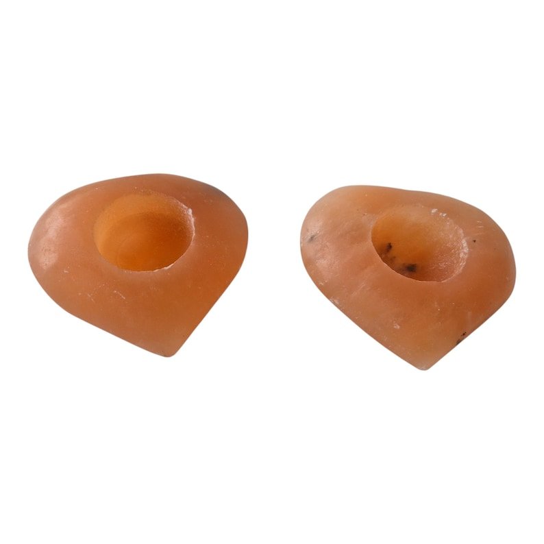 These handmade tealight holders are crafted from 100% pure Himalayan salt stone (pink Himalayan salt crystal). They have a romantic heart shape and are approximately… Because they are natural products, each heart is unique with its own soft pink to warm orange glow.