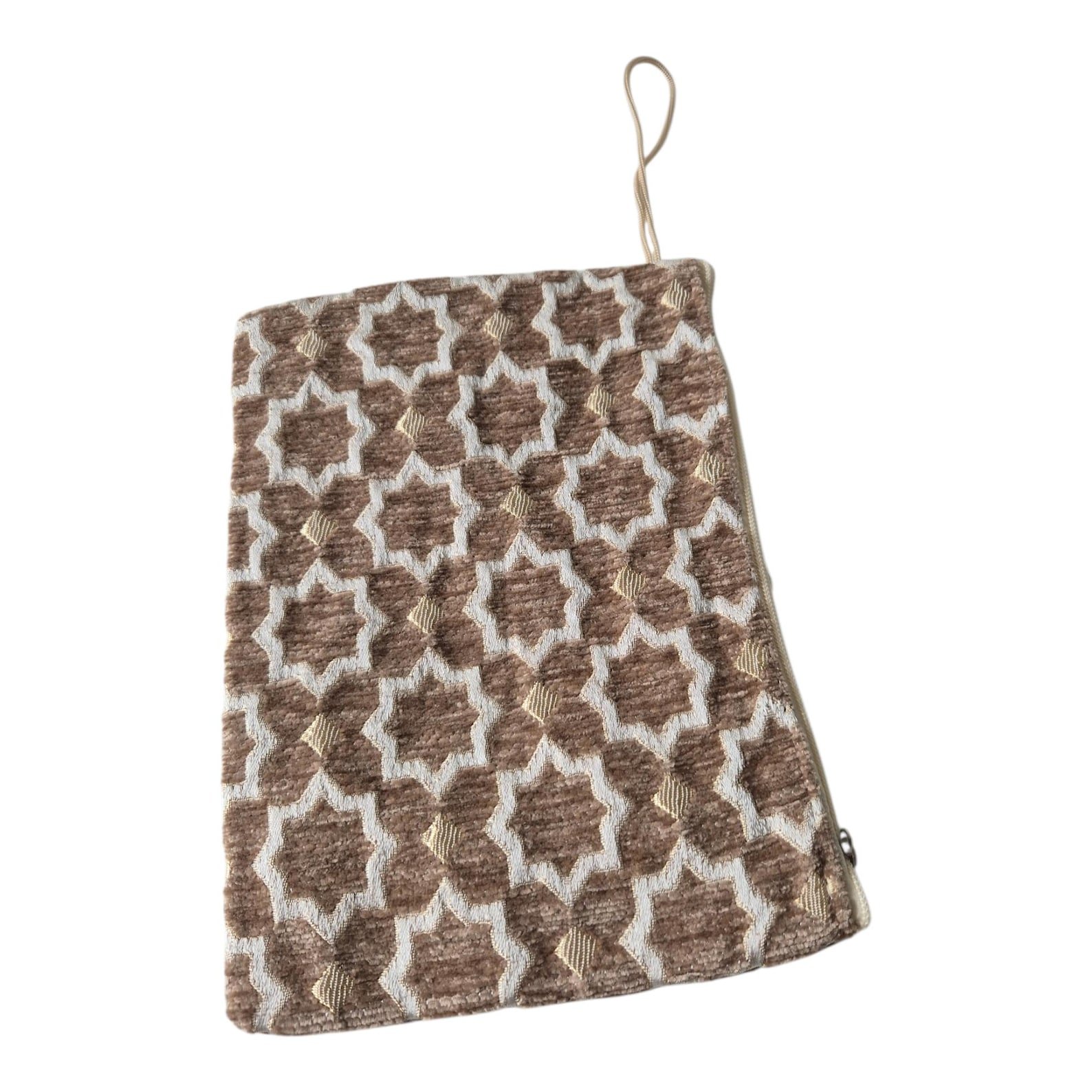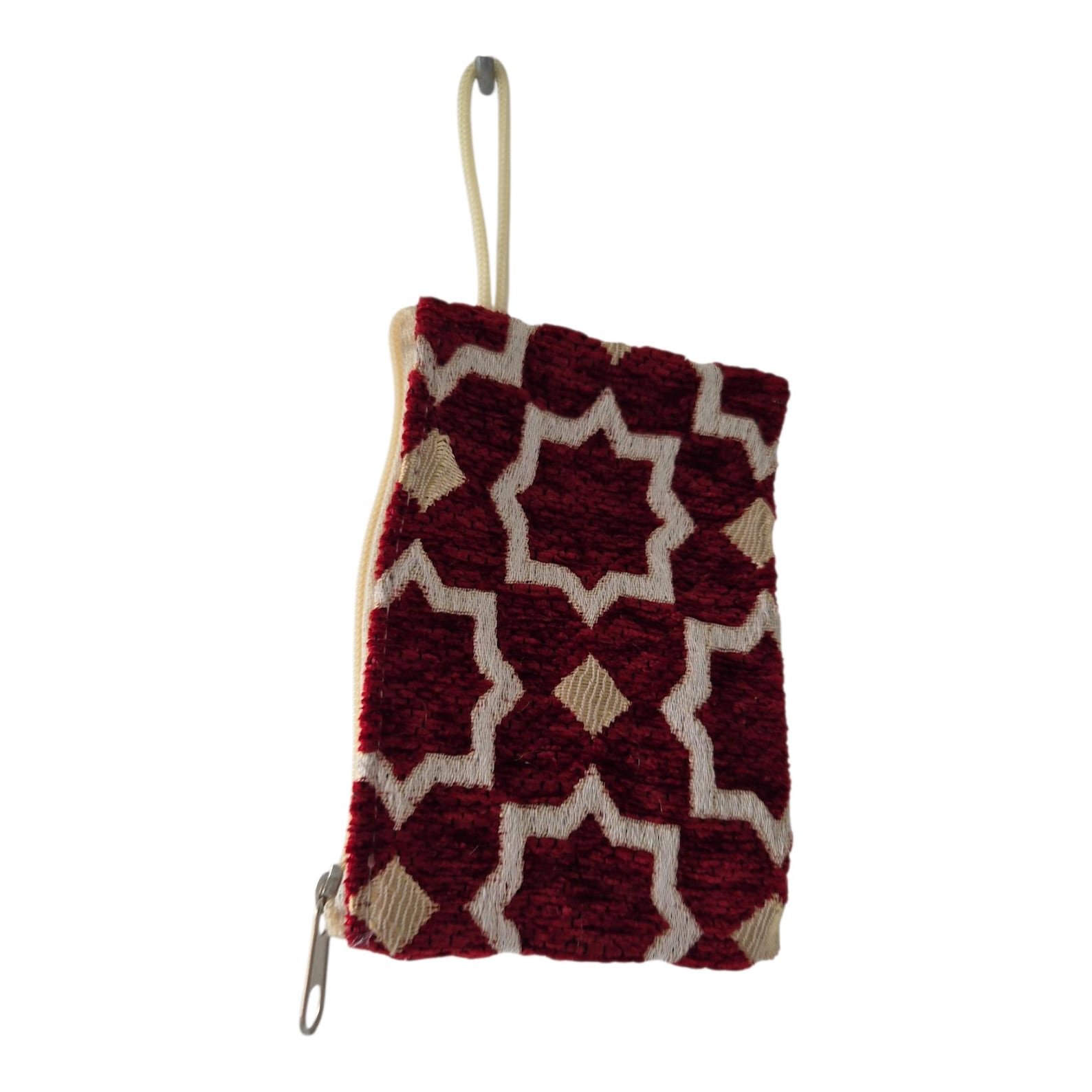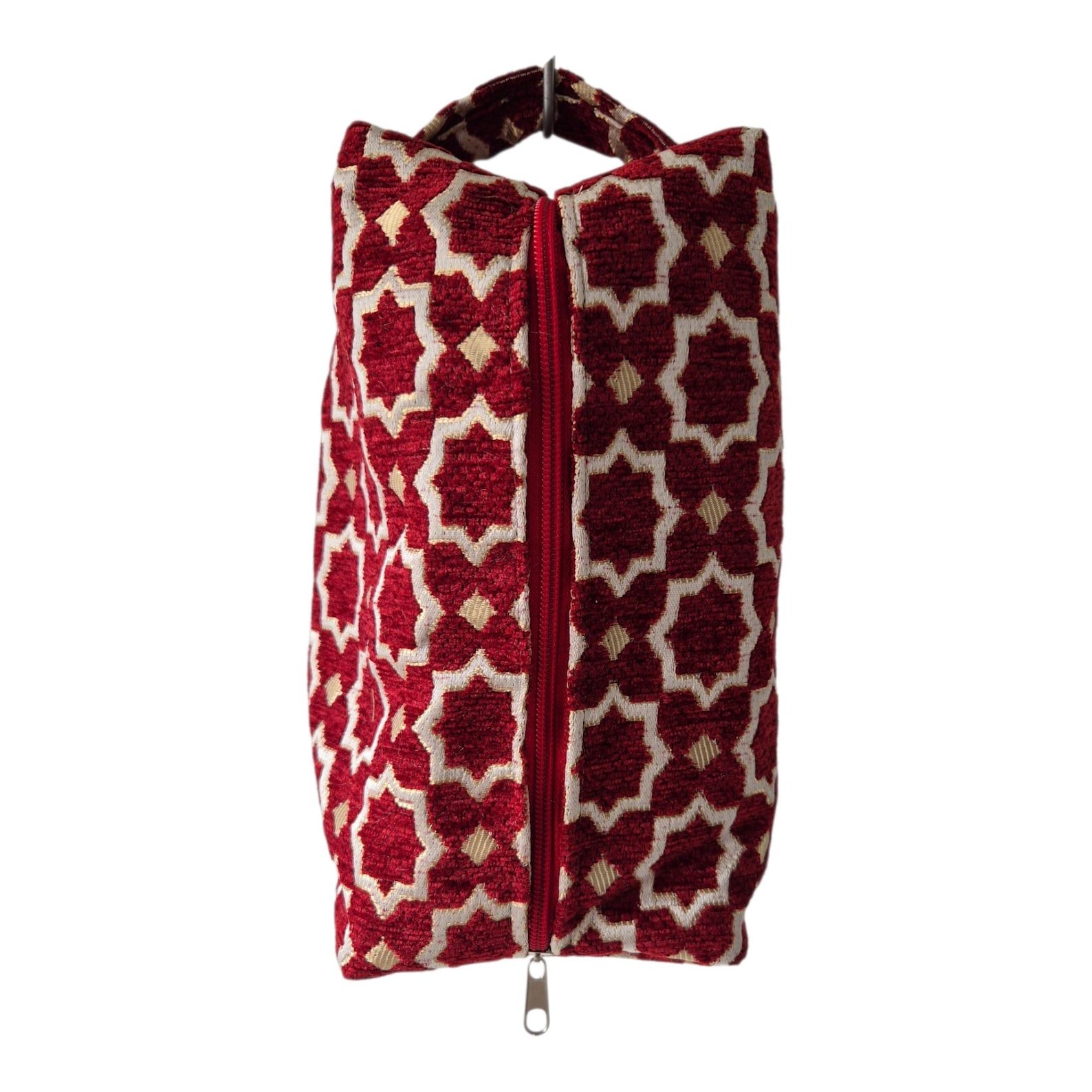 Here is a beautiful and authentic Moroccan brocade velvet zippered pouch — exactly as you describe! It is a handmade makeup bag / toiletry bag / small handbag with a rich, exotic look.