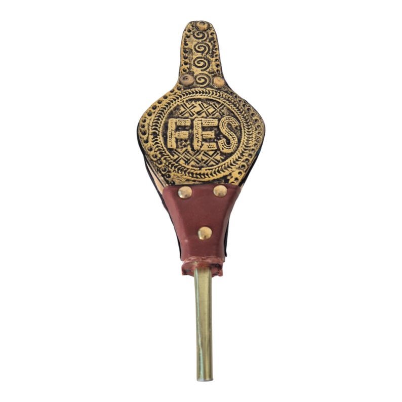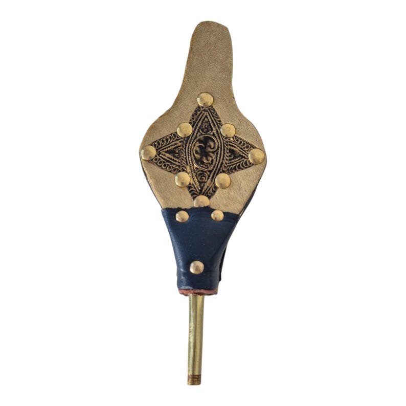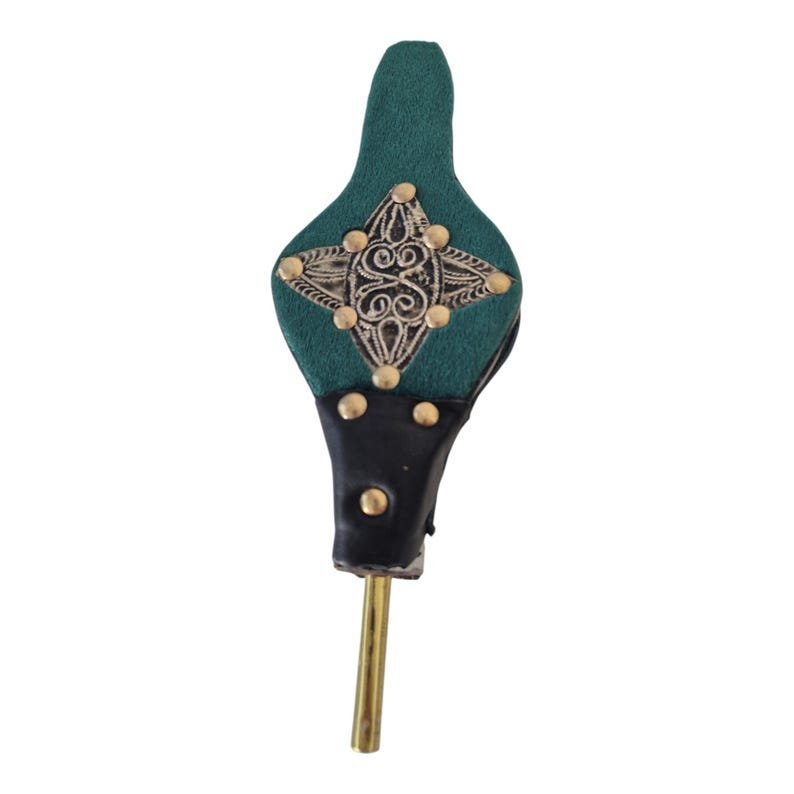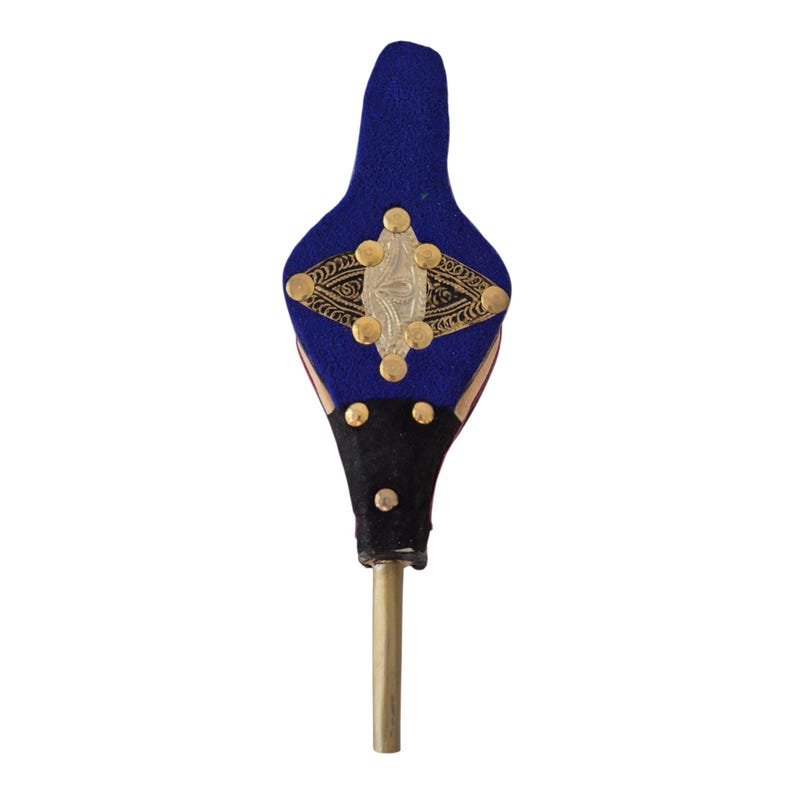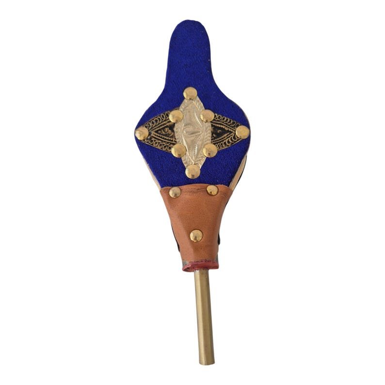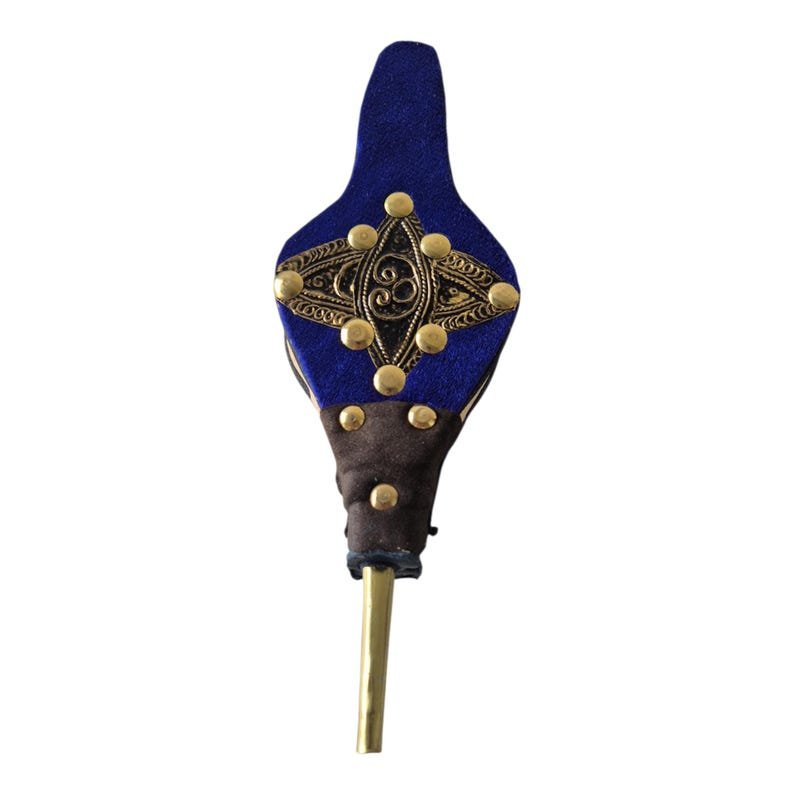 A traditional Moroccan handmade bellows, known locally as a rabouz (or raboz/rabooz in Darija). It’s an authentic Moroccan handicraft, a traditional decorative tool used to blow air into a fire, making it burn faster and hotter.