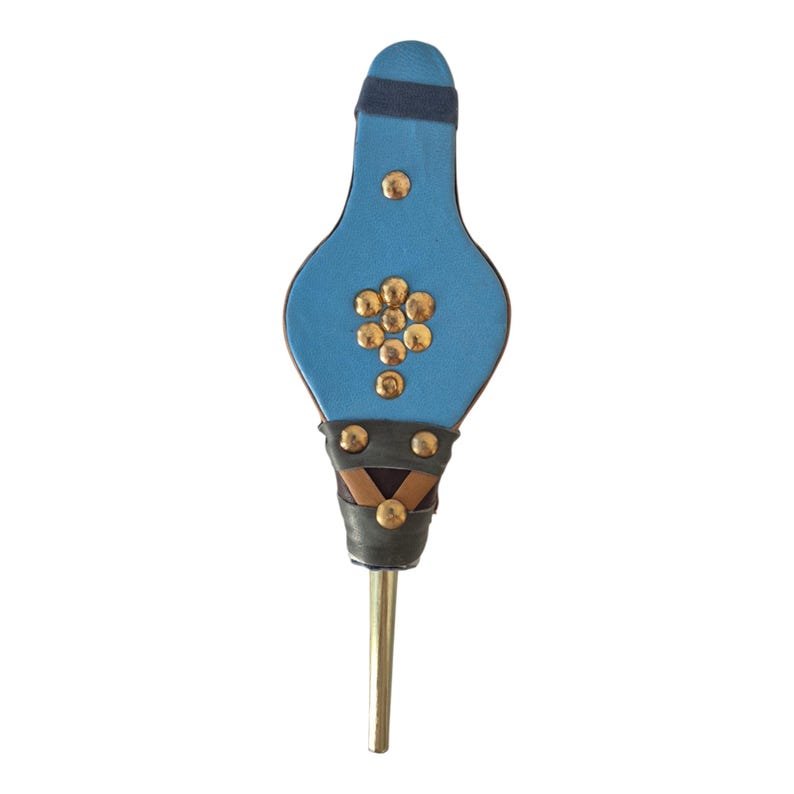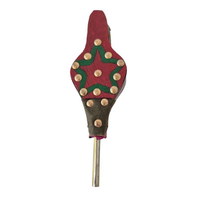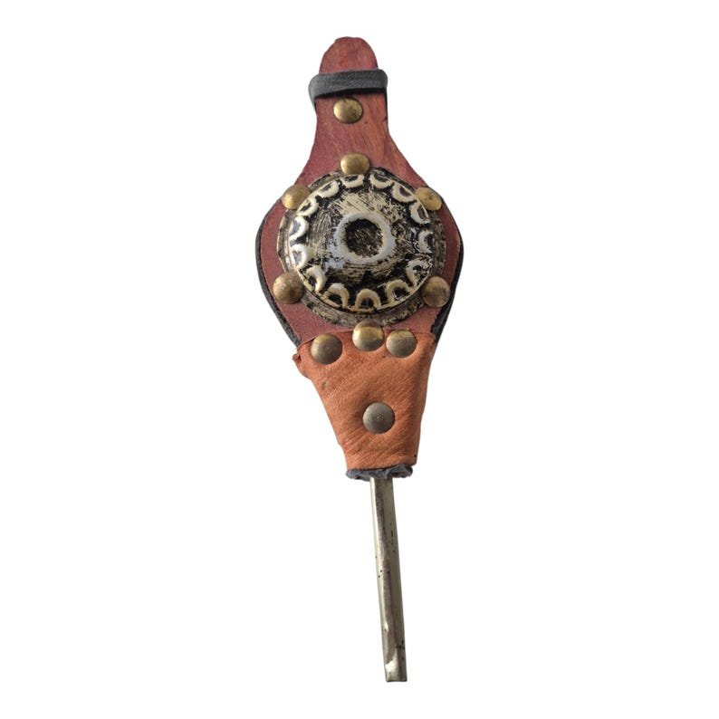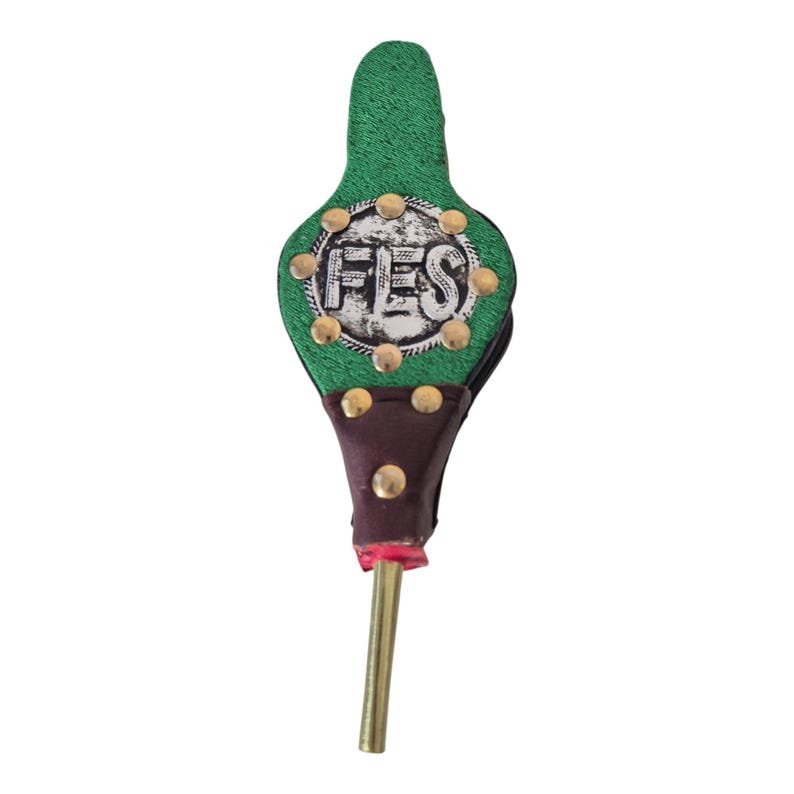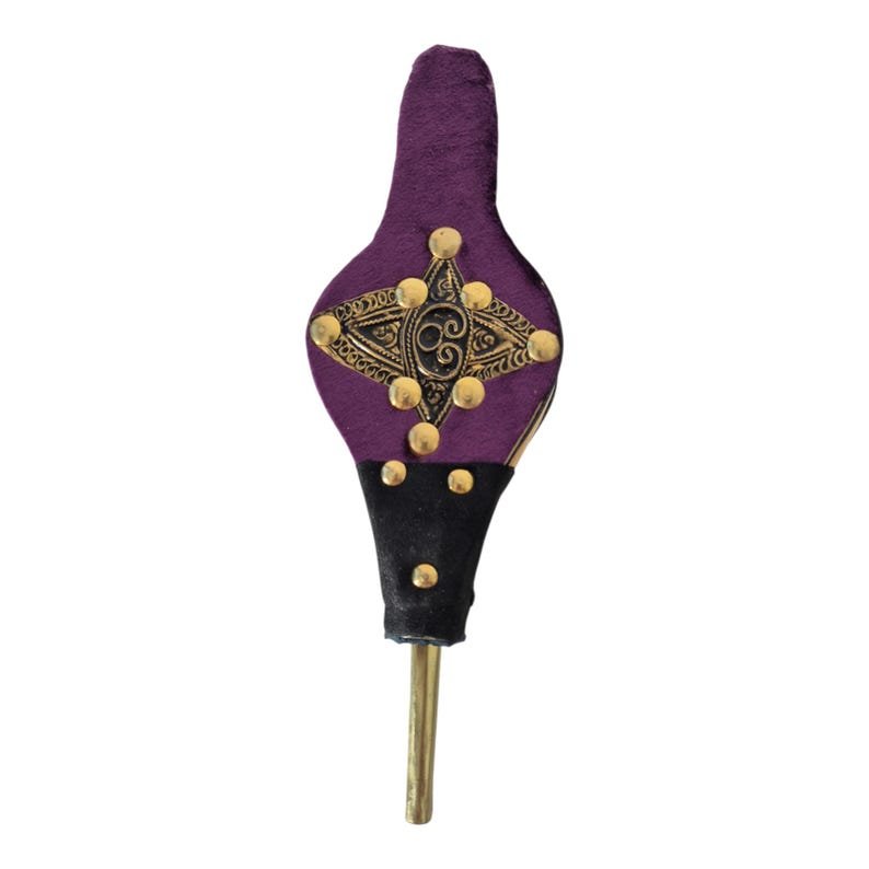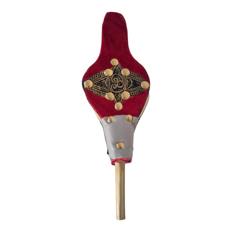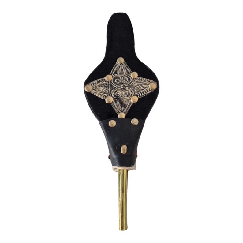 A traditional Moroccan handmade bellows, known locally as a rabouz (or raboz/rabooz in Darija). It’s an authentic Moroccan handicraft, a traditional decorative tool used to blow air into a fire, making it burn faster and hotter.